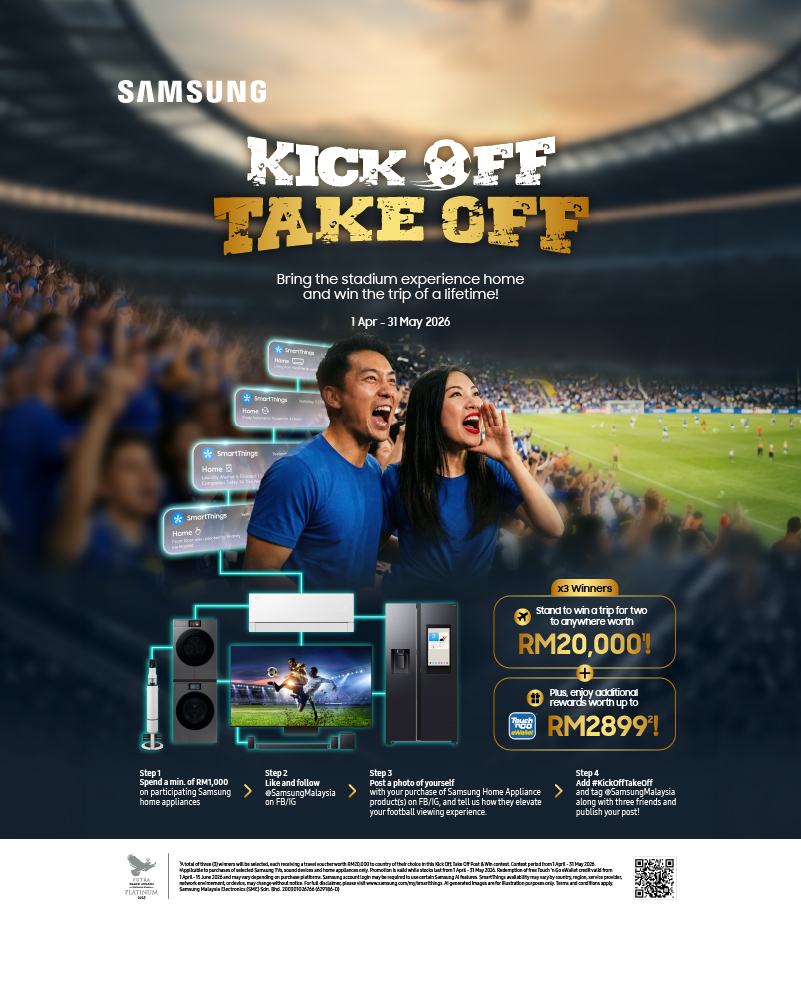 Gong Xi Raya AI Home promo. Get up to RM4,000 TNG eWallet credit and a free Samsonite luggage worth RM1,299.