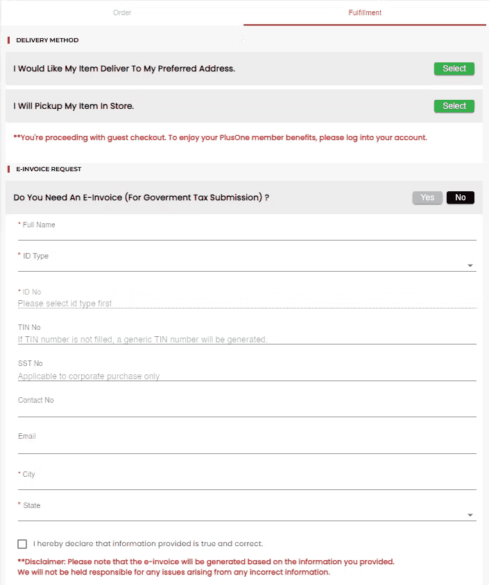 During checkout, proceed to fulfilment section and please tap YES to fill invoice request form.
