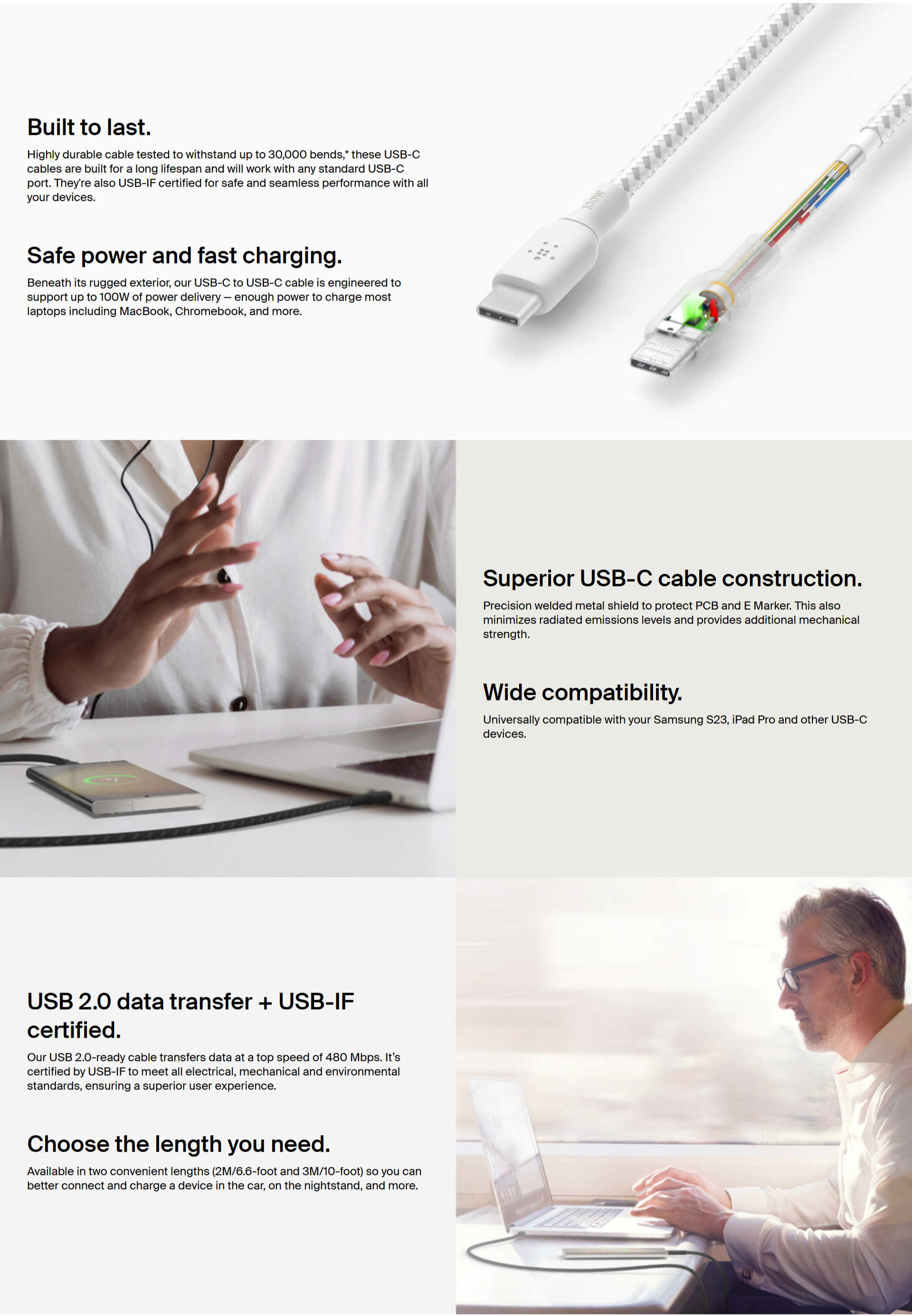 100W Braided USBC-C 2.0 CABLE 2M BLACK