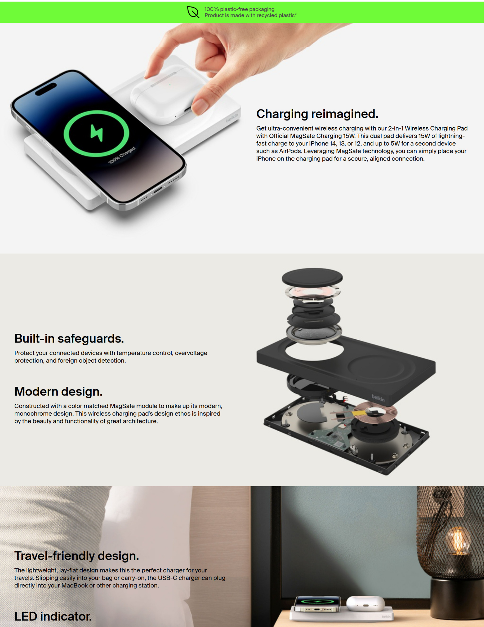 15W 2-in-1 Wireless Charging Pad with Official MagSafe Charging BoostCharge Pro Series