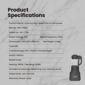 USP: 15 Hot & Cold functions with time and speed adjustable , 28 , 000 RPM motor speed , Automatic keep warm after hot drink is made , come with grinder cup , Intelligent boiling curve , Patented Ice-Crushing Blade to crush ice into flaky perfection , Preset Clean and hot sterilize mode , Ultra-smooth texture powered by high-speed blending system
