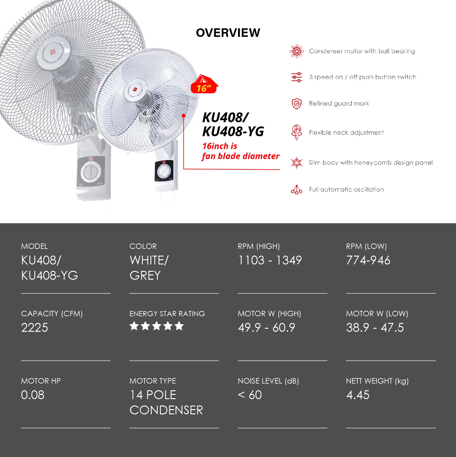 KDK 16-inch 3-Speed Wall Fan KU408
