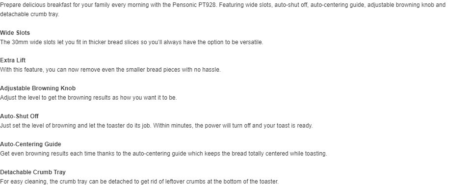 Pensonic 750W 2 Slices Bread Toaster PT928
