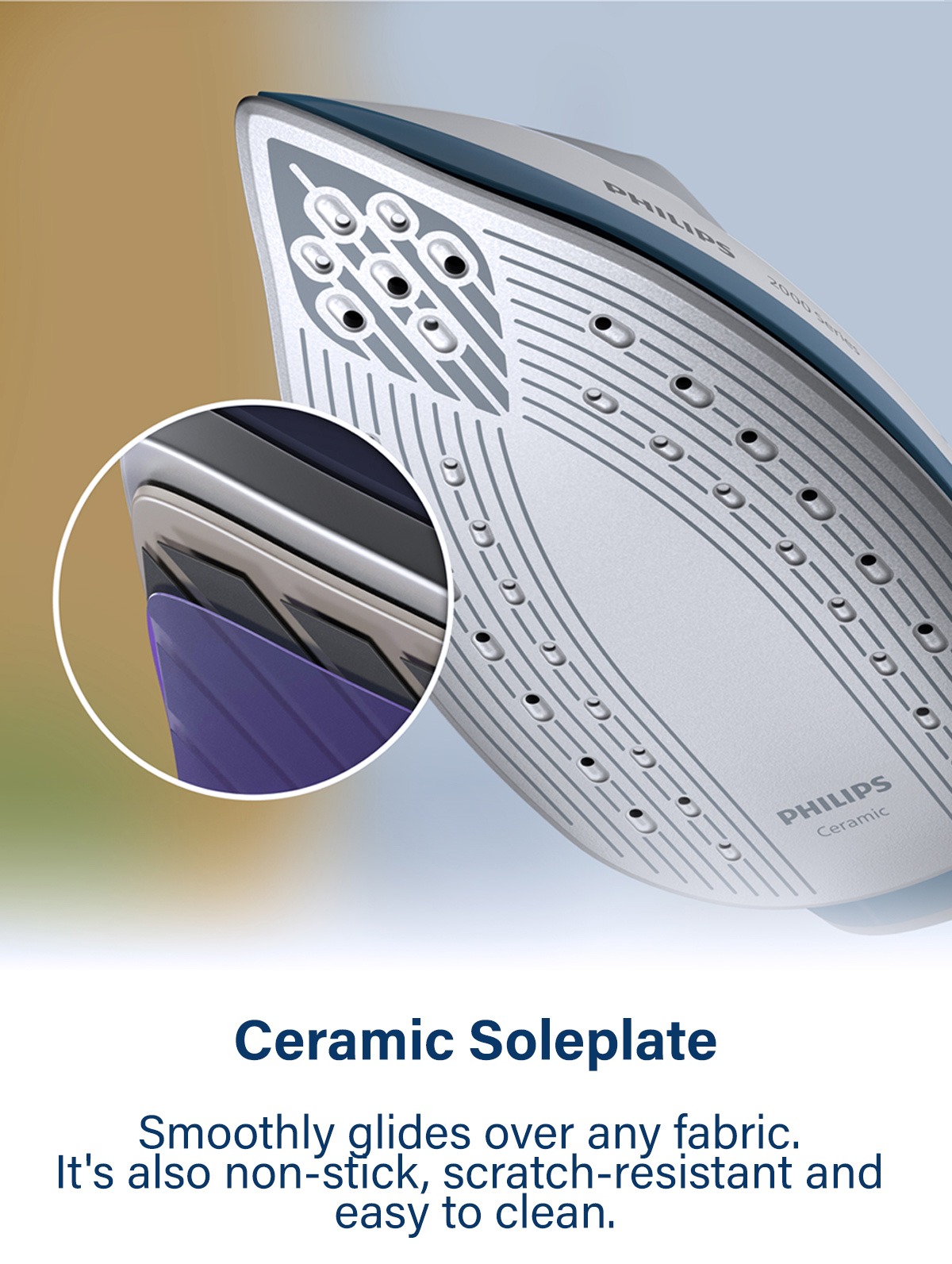 - Durable and easy glide ceramic soleplate