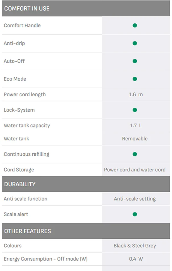 - Extra-powerful 350g/minute steam boost