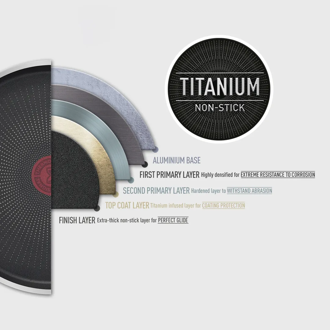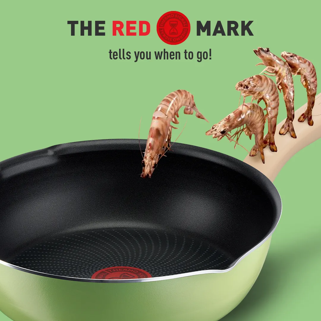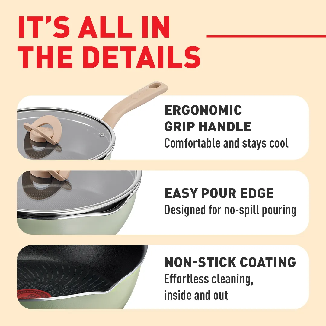 One pan that does it all! The Tefal One Pick Pot Pan is the key to perfect home cooking for any occasion—whether it’s making chili con carne for friends over the weeknight, scrambled eggs at brunch or easy weeknight pasta. Use One Pick as a wok pan for mouth-watering stir-fries, a frying pan for everything from grilled shrimp to veggie burgers, or a saucepan for delicious vegetable skillets and much more. Versatility is matched by performance, with Tefal’s signature Thermo-Signal™ heat zone changing color when the pan reaches the ideal temperature for perfect searing—for flawless cooking with none of the hassle or guesswork. The durable, Titanium-infused non-stick coating is completely safe and made to stand the test of time, for cookware you can rely on day after day. Compatible with all stovetops including induction.