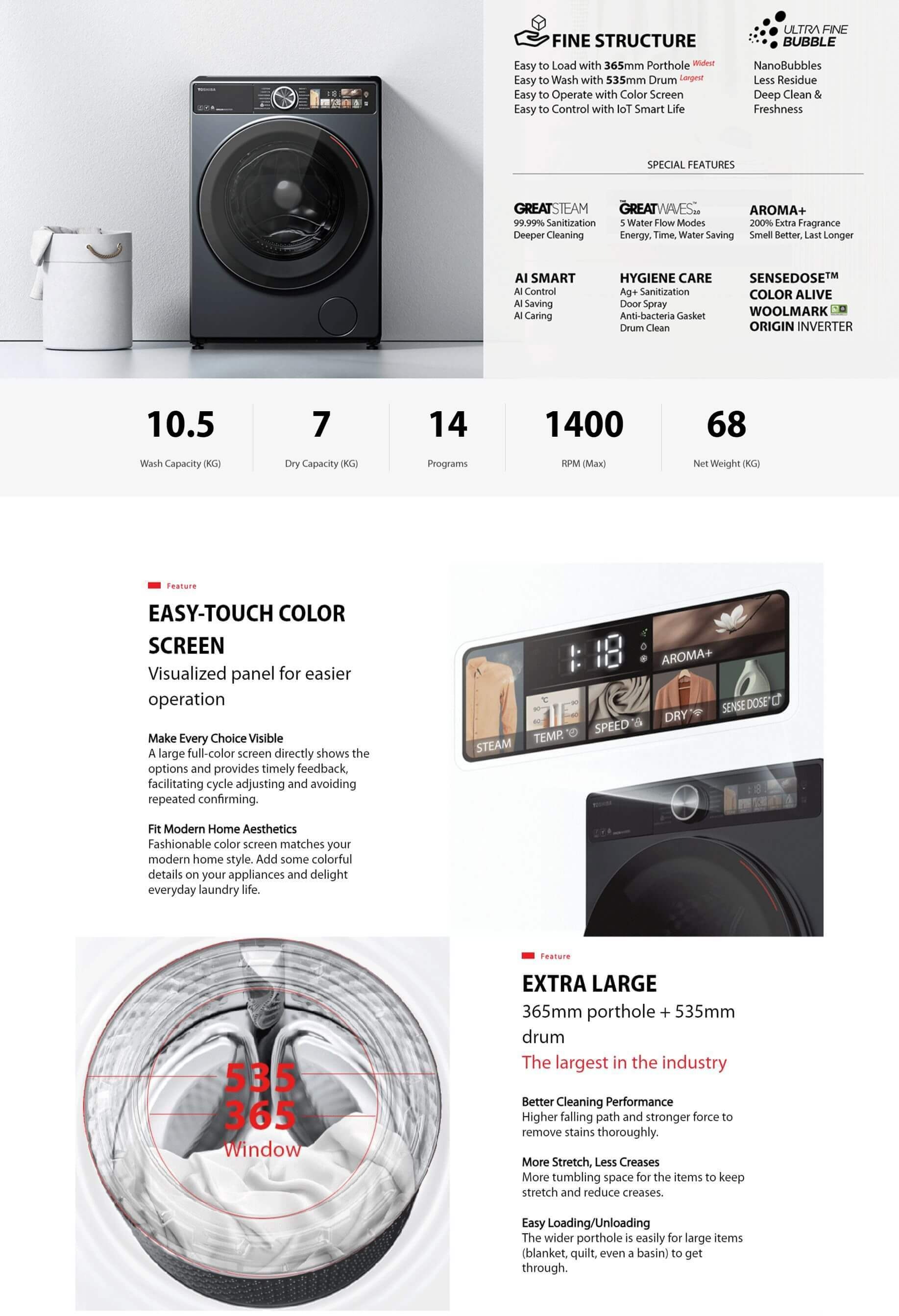 10.5KG/7KG SENSEDOSE™ Matters Washer Dryer