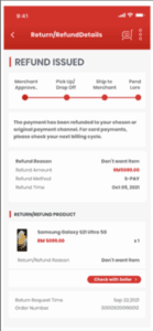 Return Accepted: If your item passes seller warehouse quality check, a ‘Refund Issued’ status will be reflected on the ‘My Orders’ page in your account. On top of that, an email notification stating that your refund is being processed will be sent to your registered email address as well. This indicates that Seller’s refund processing timeframe has started.