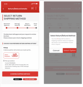 Step 1: Go to Item Order, click on the ‘Return/Refund’ button then click on the ‘Confirm’ button. Then select the reason and upload a clear image of the product to illustrate the product condition, after that click on the ‘Submit’ button.