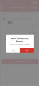 Step 2: click ‘Yes’ to confirm cancel return/ refund request.