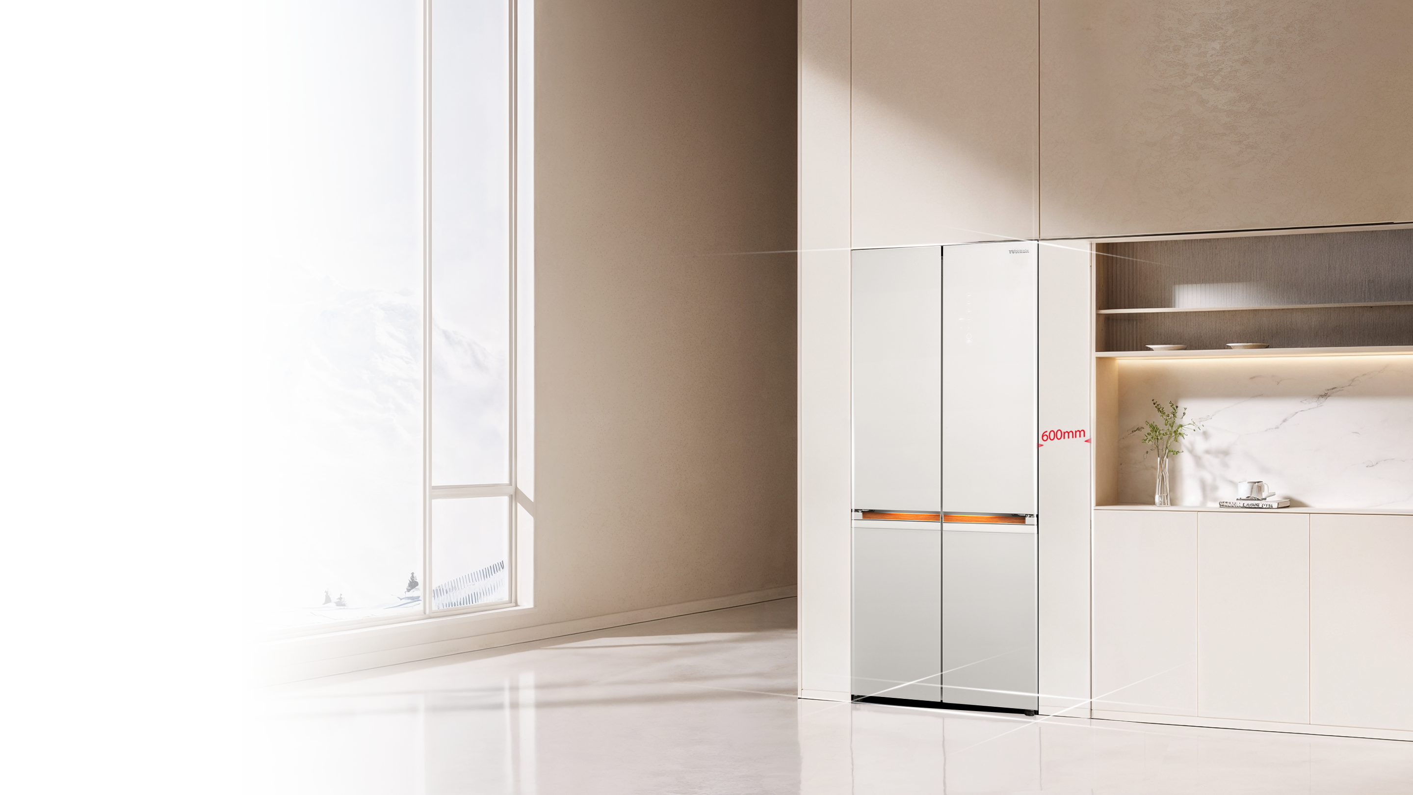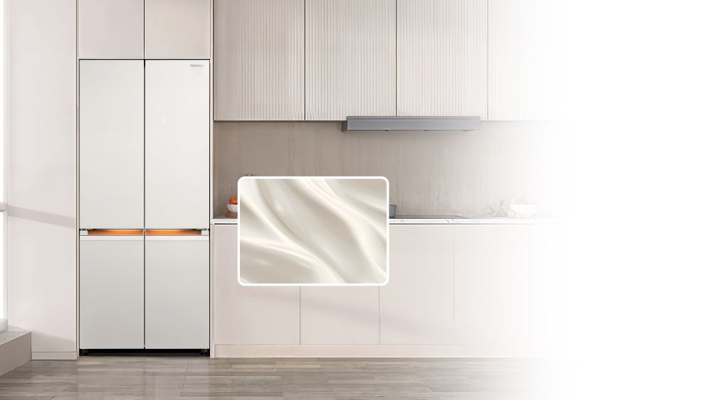 With its warm beige shade like the soft glow of amber, the refrigerator adds a touch of refined Eastern elegance to the kitchen, effortlessly blending into the cozy family atmosphere.