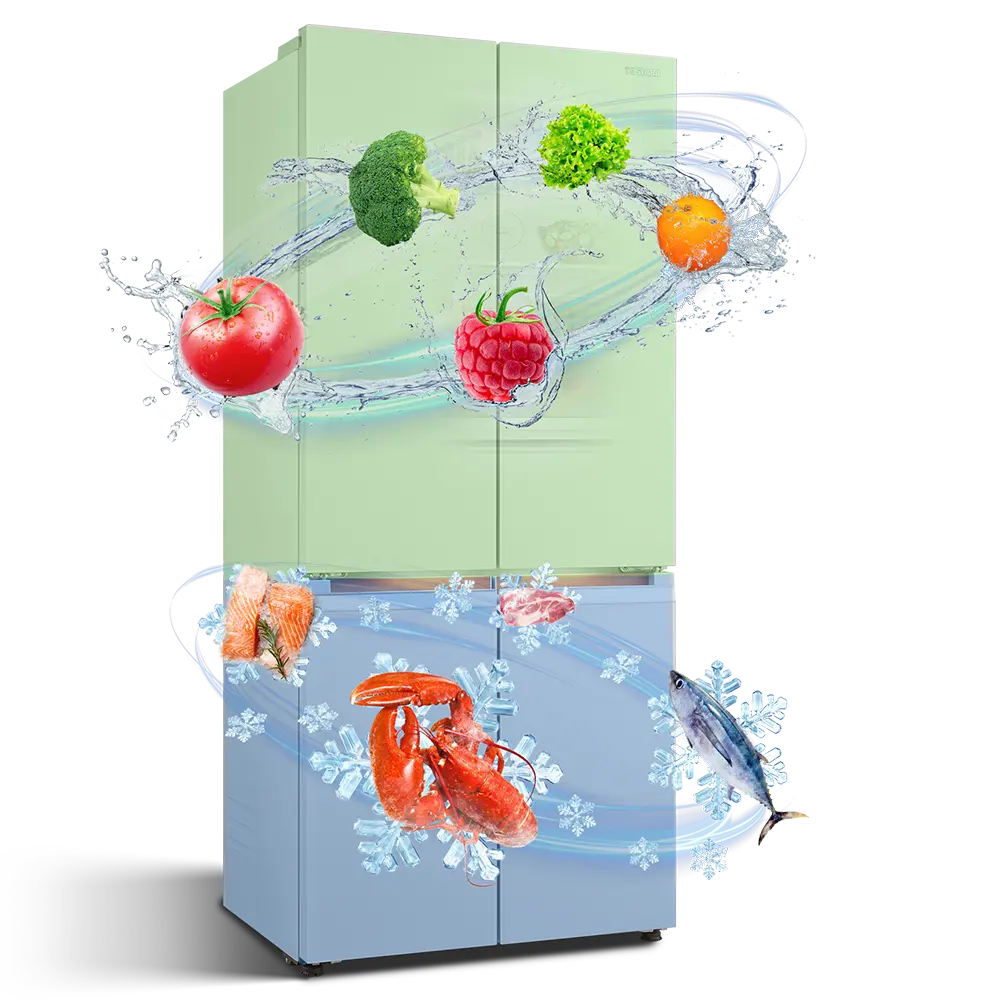 It features two independent evaporators that provide optimal cooling performance and precise temperature control in both the freezer and refrigerator compartments. This prevents flavour transfer and maintains the original taste and freshness of ingredients, ensuring a fresher, healthier storage environment.