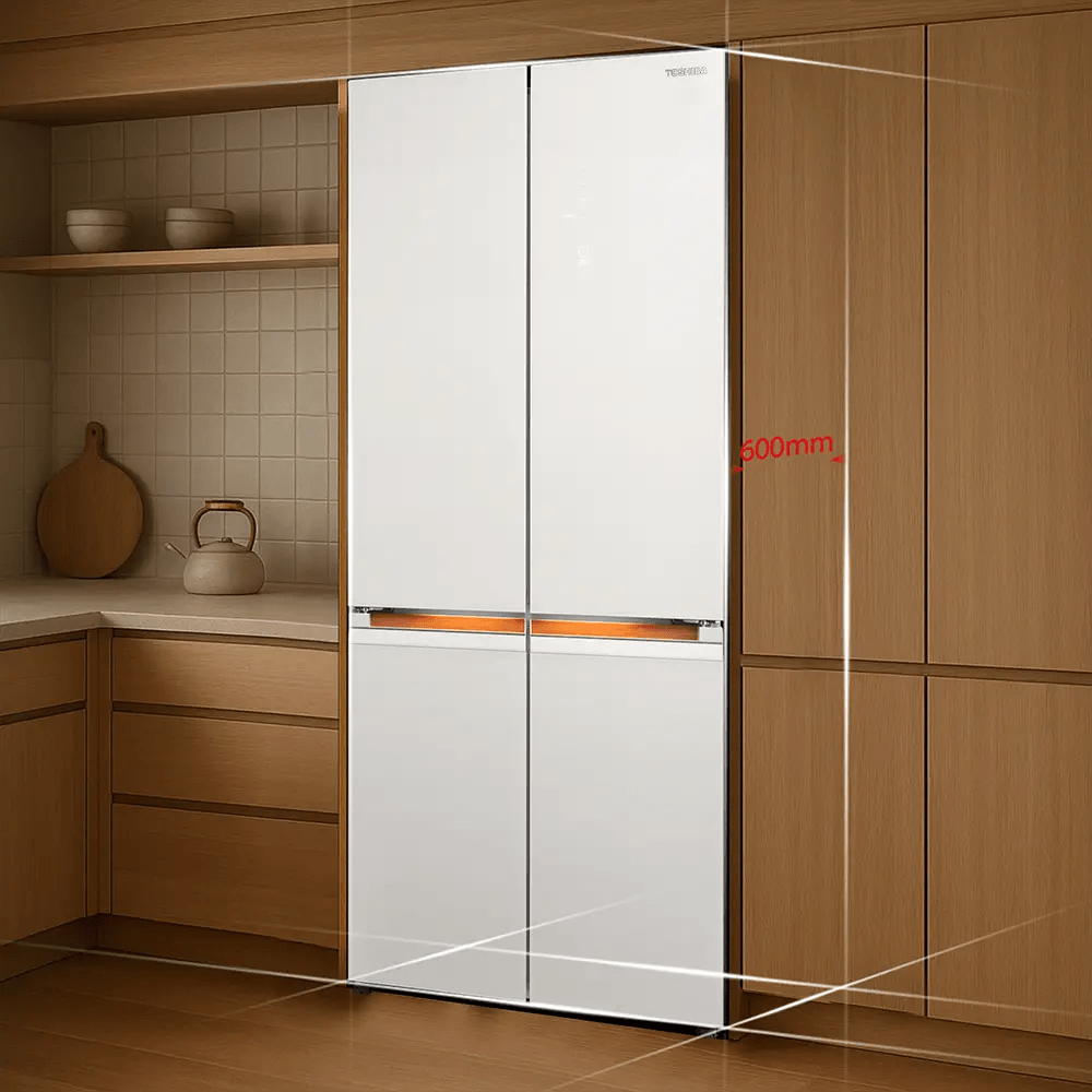 Innovative design from Toshiba optimizes kitchen and living space. 600mm fits easily into ordinary cabinets, creating effortless integration. No blind areas, easy floor and house cleaning.